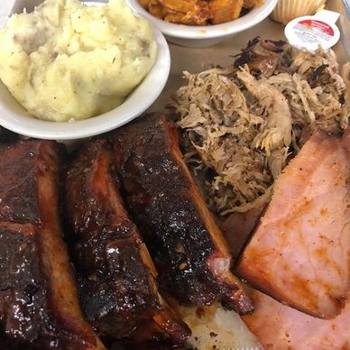 3 of Your Favorites. Slow Cooked Pulled Pork, Captain Morgan Spiced Ham & Tender St Louis Glazed Ribs with Your Choice of 2 Sides.